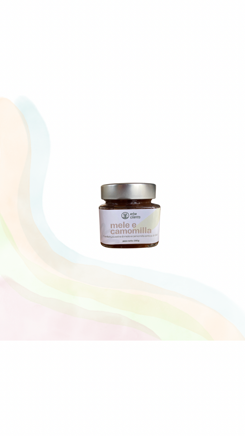 Il nostro secondo prodotto è una confettura extra di MELE E CAMOMILLA ANTICA DI GIOI , dal sapore leggermente dolce e floreale .
